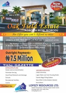 Oakfield Estate, Agbowa-Ikorodu — Gazette Title | Minutes from Caleb University & Imota Rice Mill